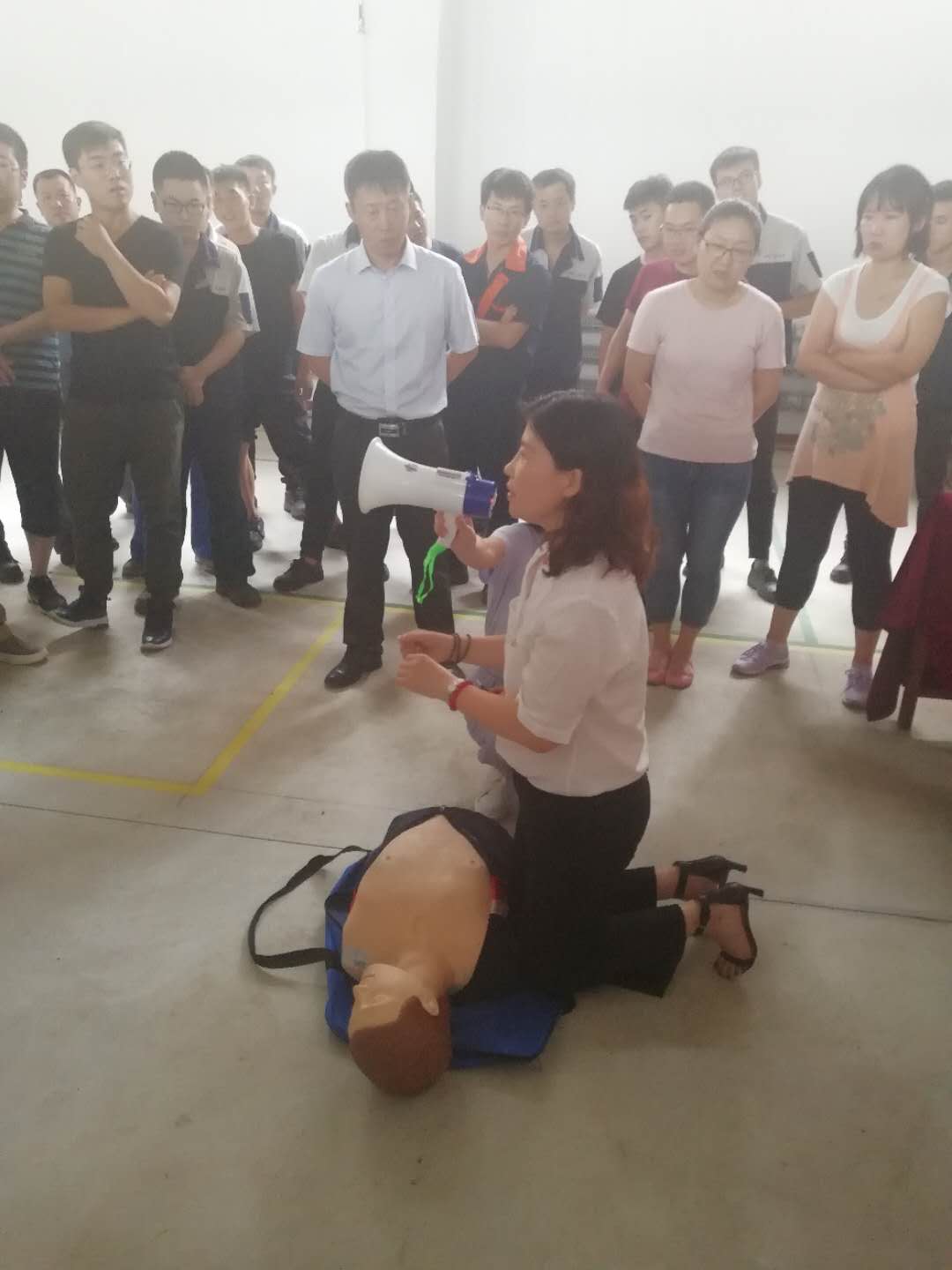 此次活動邀請沈陽市第一人民醫(yī)院副院長徐冰教授,做急救知識講座及心肺復蘇演練,徐教授針對如何掌握基本心肺復蘇技術的操作要點及注意事項進行了細致講解,隨后利用仿真模擬人進行急救演示,員工現(xiàn)場進行了練習操作。